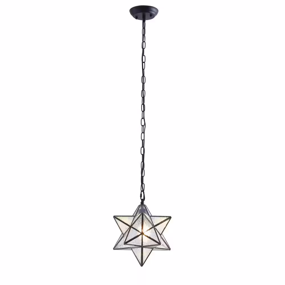 aiwen 12 in. Modern Black 1-Light Geometric Moravian Star Pendant Light Creative Design Hanging Light with Seeded Glass Shade