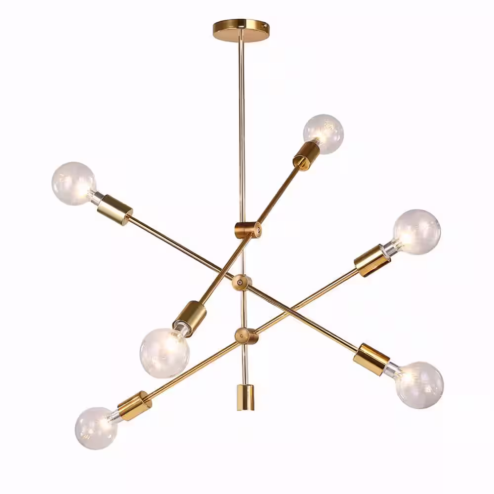YANSUN 6-Light Gold Sputnik Chandelier, Modern Pendant Lighting Ceiling Light Fixture