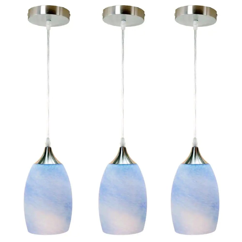 None 1-Light Oval Nickel Hand Blown Blue Glass Shade Pendant (Pack of 3)