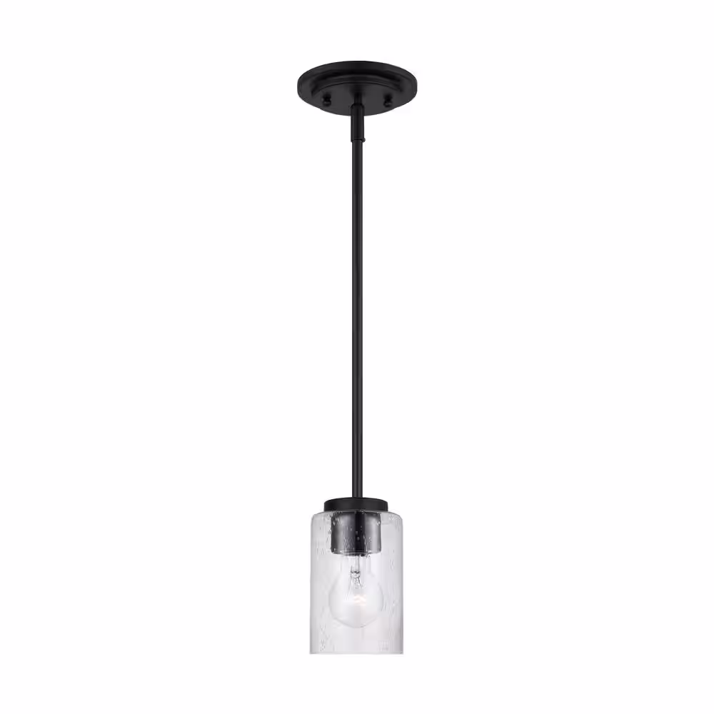 Generation Lighting Oslo 4 in. 1-Light Midnight Matte Black Transitional Contemporary Mini Pendant with Clear Seeded Glass Shade
