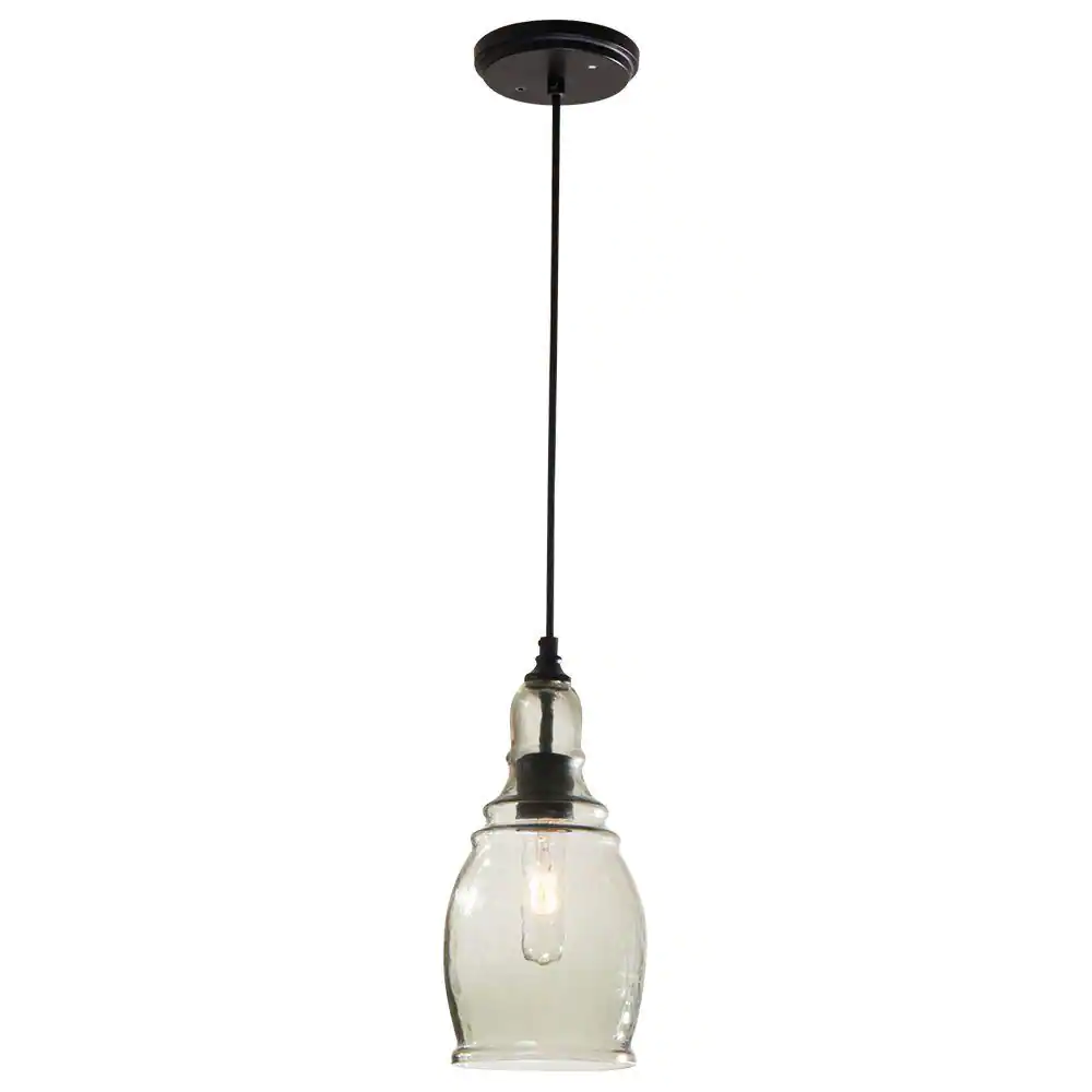 Home Decorators Collection Gardiner 1-Light Black Mini Pendant with Smoke Tint Glass Shade