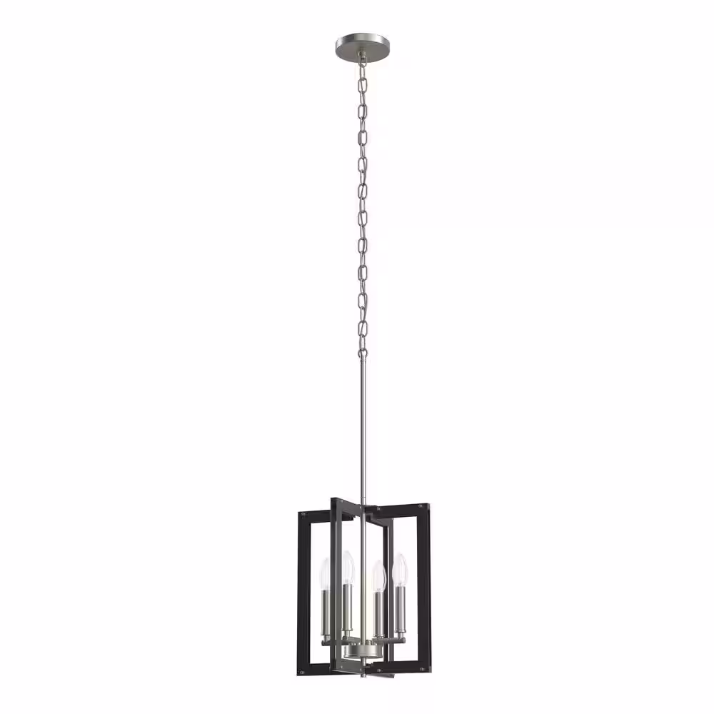 KICHLER Pendroy 4-Light Brushed Nickel and Black Industrial Cage Foyer Pendant Hanging Light