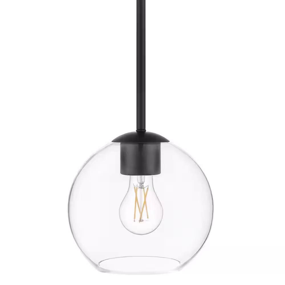 Home Decorators Collection Vista Heights 1-Light Matte Black Globe Pendant with Clear Glass