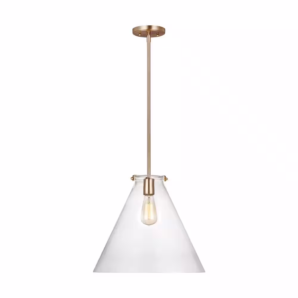 None Kate 1-Light Satin Brass Cone Hanging Pendant with Clear Glass Shade