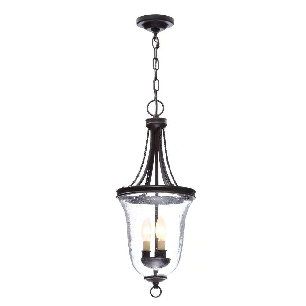 Progress Lighting Seeded Glass Collection 9.75 in. 3-Light Antique Bronze Tranistional Foyer Pendant with Clear Seeded Glass