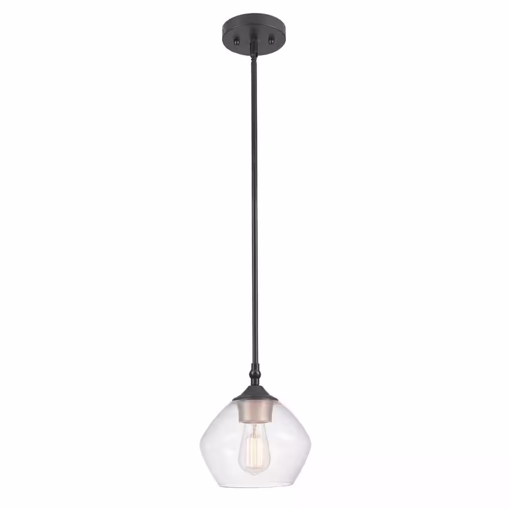 Globe Electric Harrow 1-Light Matte Black Pendant with Clear Glass Shade