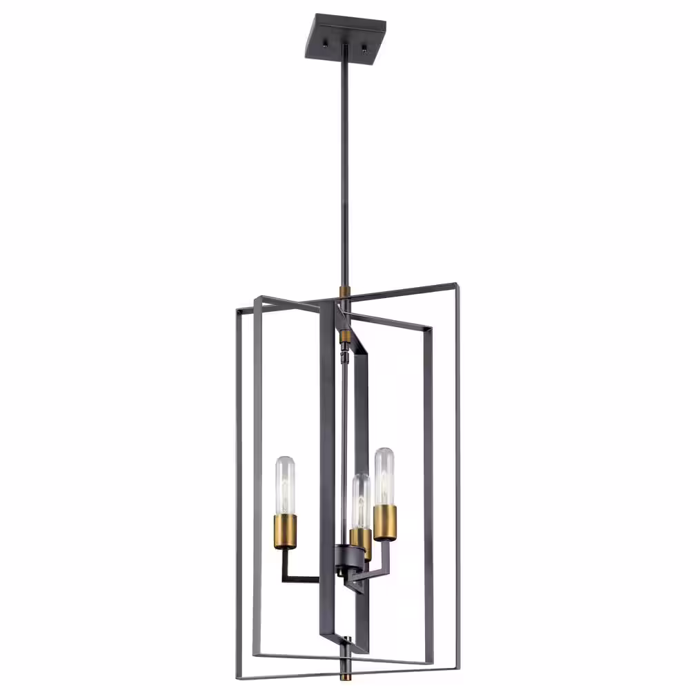 KICHLER Taubert 3-Light Black/Natural Brass Mid-Century Modern Candle Foyer Pendant Hanging Light