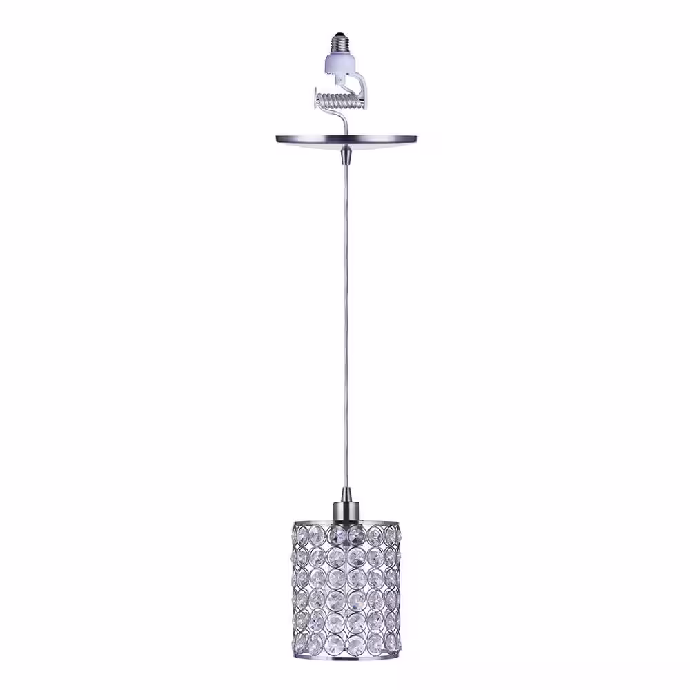 Worth Home Products WHP 1-Light Brushed Nickel Recessed Light Conversion Kit Shaded Pendant Light with Cylinder Crystal Shade