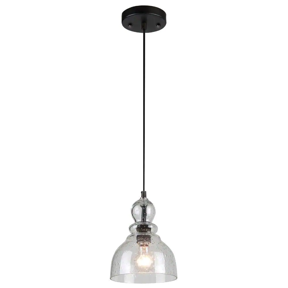 Westinghouse 1-Light Oil Rubbed Bronze Adjustable Mini Pendant with Hand-Blown Clear Seeded Glass