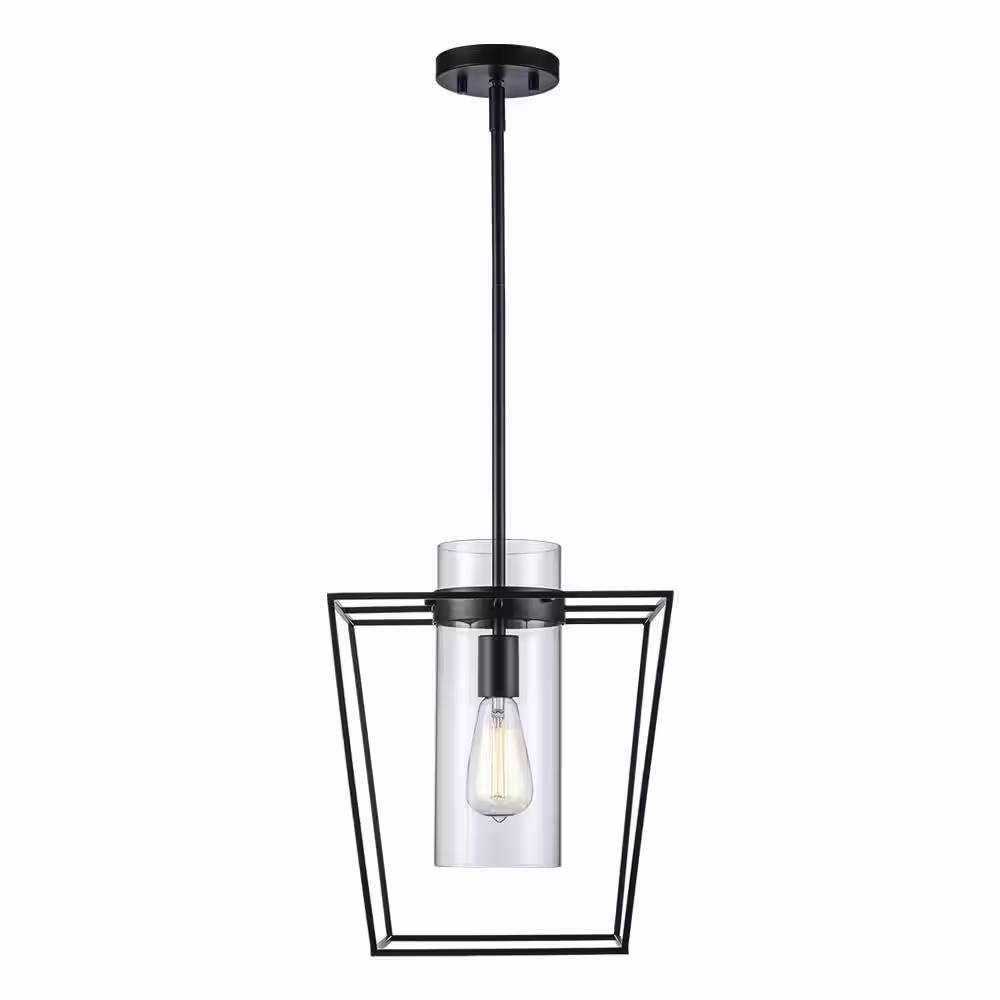 Monteaux Lighting 12 in. 1-Light Black Pendant Light Fixture with Clear Glass Cylinder Shade