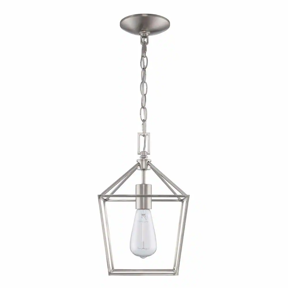 Home Decorators Collection Weyburn 1-Light Brushed Nickel Farmhouse Mini Pendant Light Fixture with Caged Metal Shade