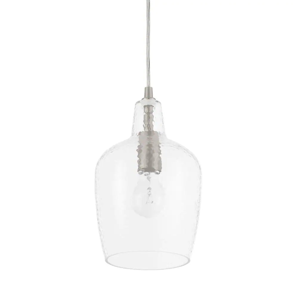 Hampton Bay Gillian 1-Light Brushed Nickel Cone Mini Pendant with Clear Hammered Glass