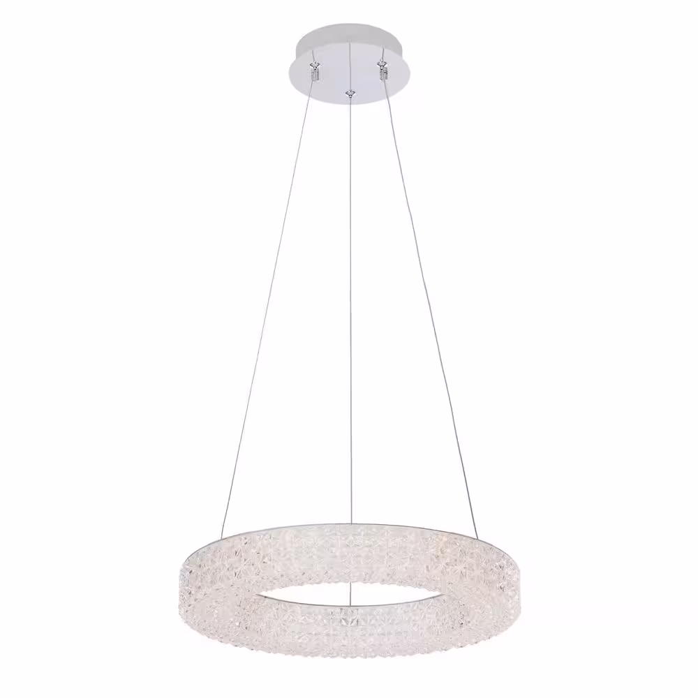 Home Decorators Collection Wesley Park 100-Watt Integrated LED Chrome Pendant Hanging Light with Clear Round Acrylic Ring Shade