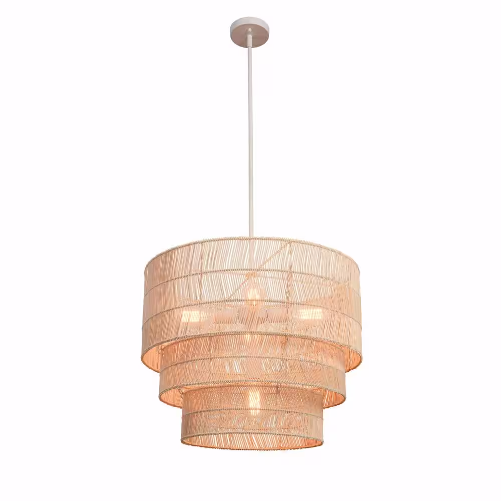Hampton Bay Sessions 5-Light Brown Tiered Rattan Pendant