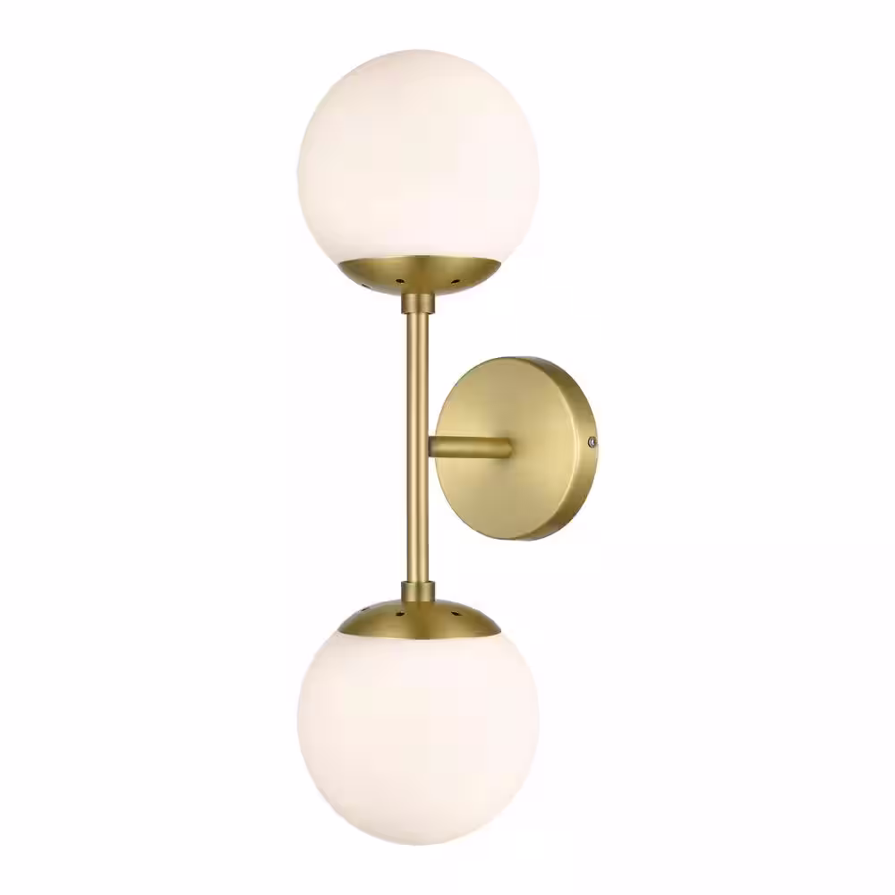 Light Society Zeno Globe 2-Light Wall Sconce in Brushed Brass/White