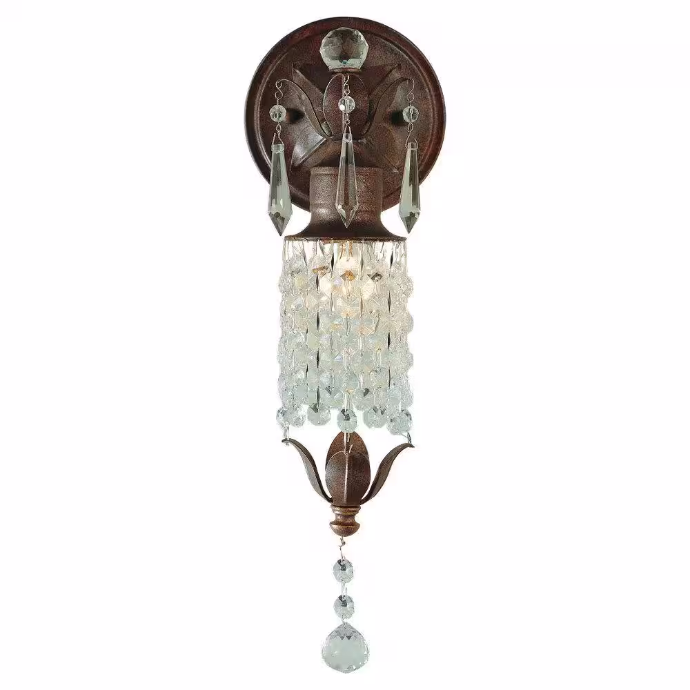 Generation Lighting Maison De Ville 5 in. W x 14 in. H 1-Light British Bronze French Country Sconce with Crystal and Bead Accents