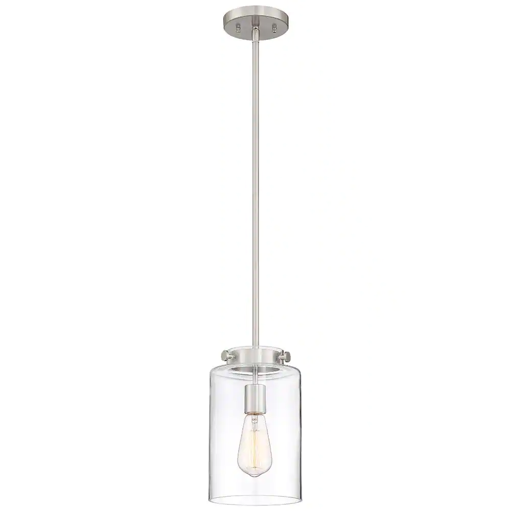 Hampton Bay Mullins 6.75 in. 1-Light Brushed Nickel Mini Pendant with Clear Glass Shade