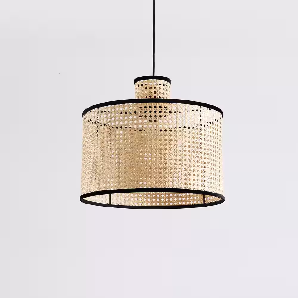 Vidalite Modern Bohemian 1-Light 2-Tier Pendant Light, PVC Rattan Shade With Velvet Rim