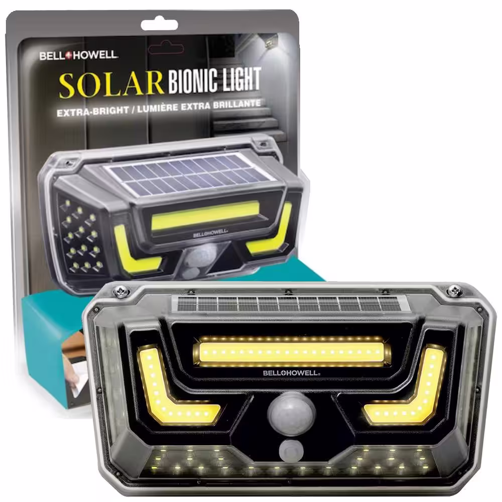 Bell + Howell 5-Watt Equivalent Integrated LED Black 300 Lumens Warm Light 2 Modes Motion Solar Bionic Light Wall Pack Light, 3500K