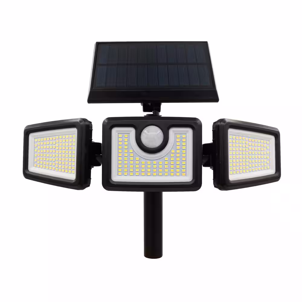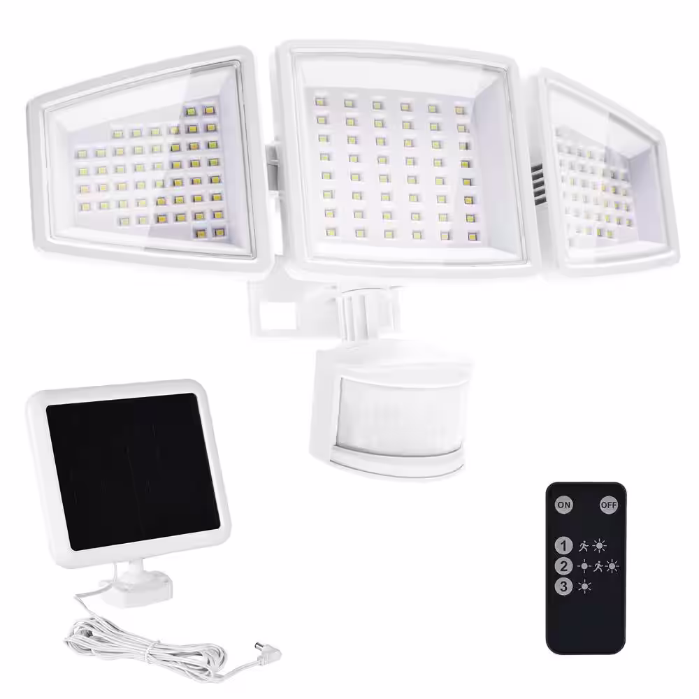 LUTEC Triple-Head 1800 Lumen 180° White Motion Sensing Outdoor Integrated LED Solar Flood Light