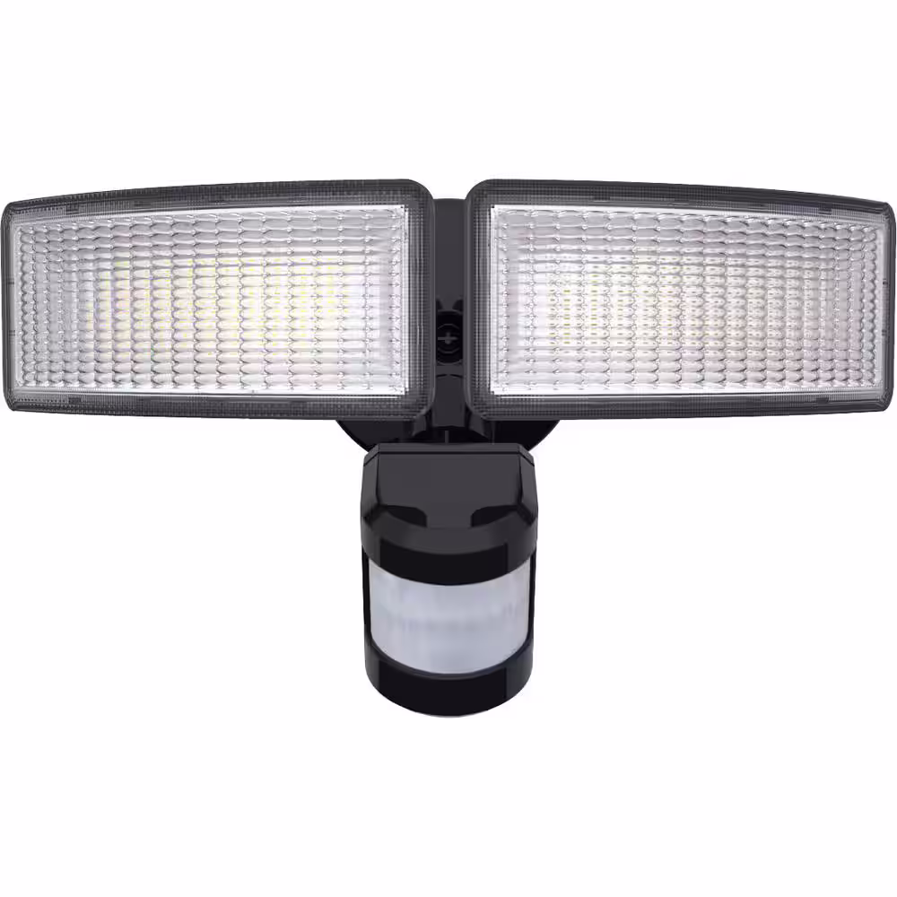 None 160-Watt Equivalent 2-Light 60-Degree Black 5000K Motion Activated Outdoor Integrated LED Square Adjustable Flood Light