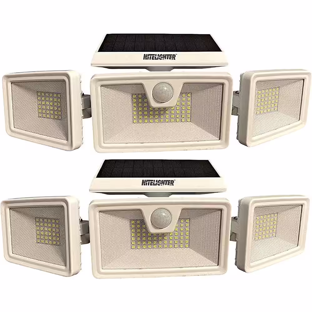 Nitelighter 3-Mode Solar-Powered Motion-Activated LED Flood Light, Outdoor Spotlight w/ Daylight Sensor, 3 Adjustable Lamps (2-pack)