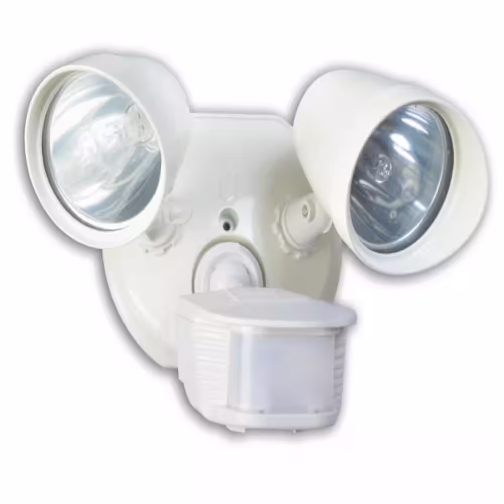 Southwire 200-Watt 180-Degree White Motion Activated Outdoor Dusk to Dawn Security Flood Light with Twin Head and Halogen Bulb