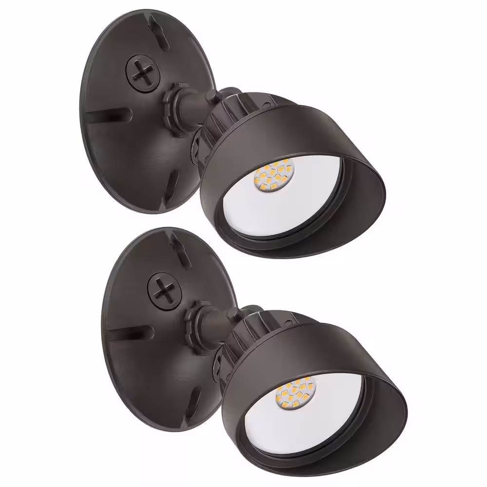 Maxxima 13-Watt - 55W Incandescent Equivalence - 800 Lumens, 220-Degree Brown 1 Head Outdoor Integrated LED Flood Light (2-Pack)