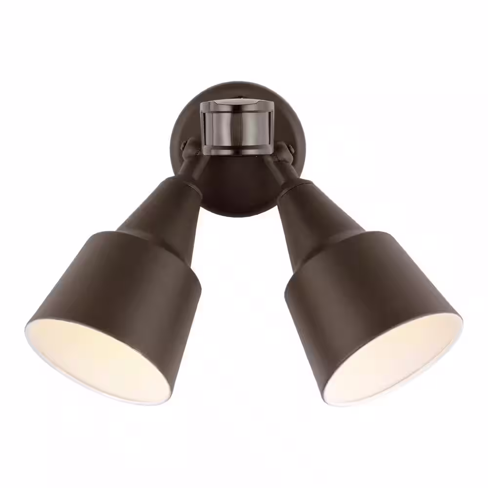 Generation Lighting 2 Head Antique Bronze Motion Activiated Outdoor Flood Light with Photo Cell and LED Light Bulbs