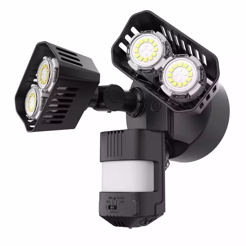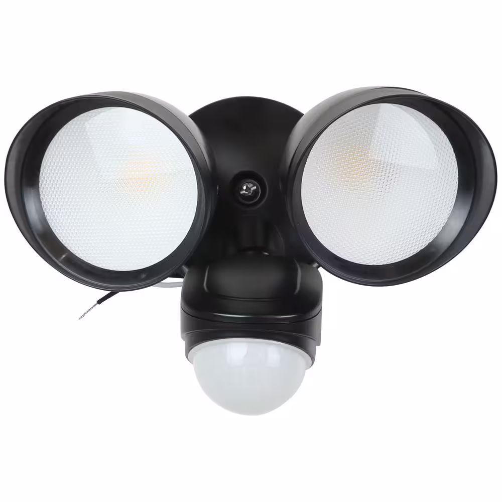 Sunlite 20-Watt 150-Degree Black Motion Activated Outdoor Integrated LED Flood Dual Head Round Wall Mount Security Light, 5000K