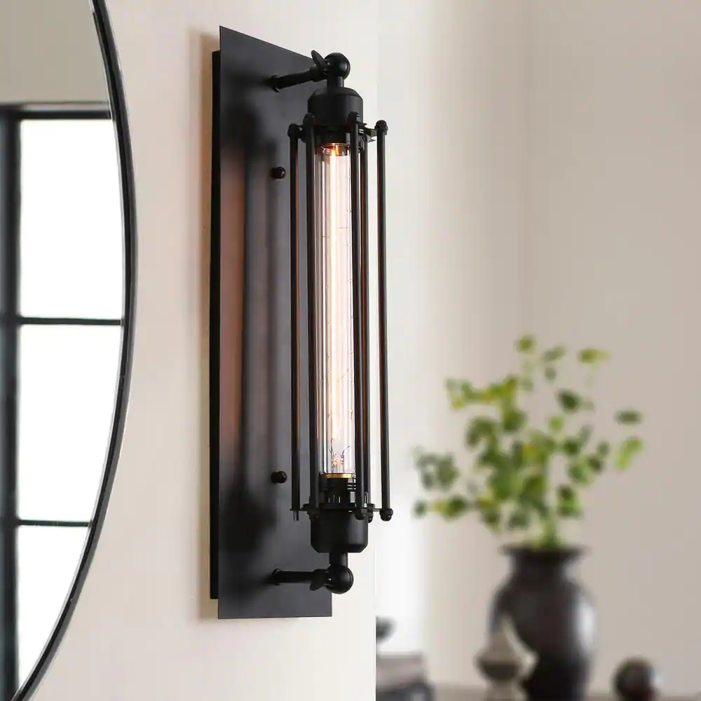 LNC Modern Industrial Black Linear Wall Sconce, 1-Light Bathroom Vanity Light with Metal Wire Cage For Dry Areas Hallway