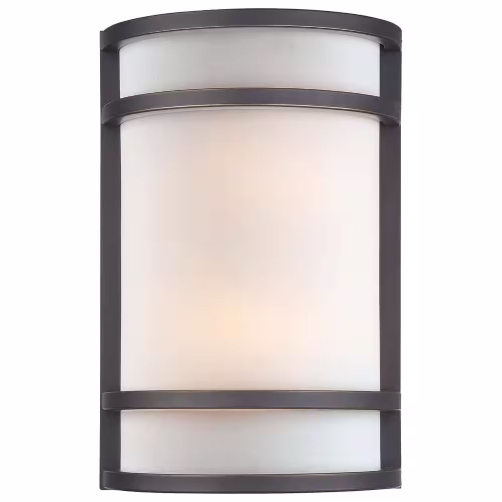 Hampton Bay Obsidian 1-Light Brushed Nickel Sconce with Frosted Glass Shade
