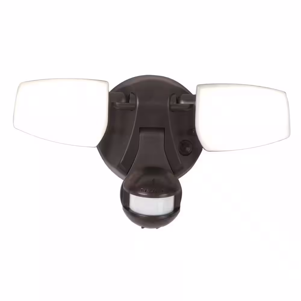 Halo 180-Degree Bronze Motion Activated Outdoor Integrated LED Twin Head Flood Light with Selectable CCT, 2200 Lumens