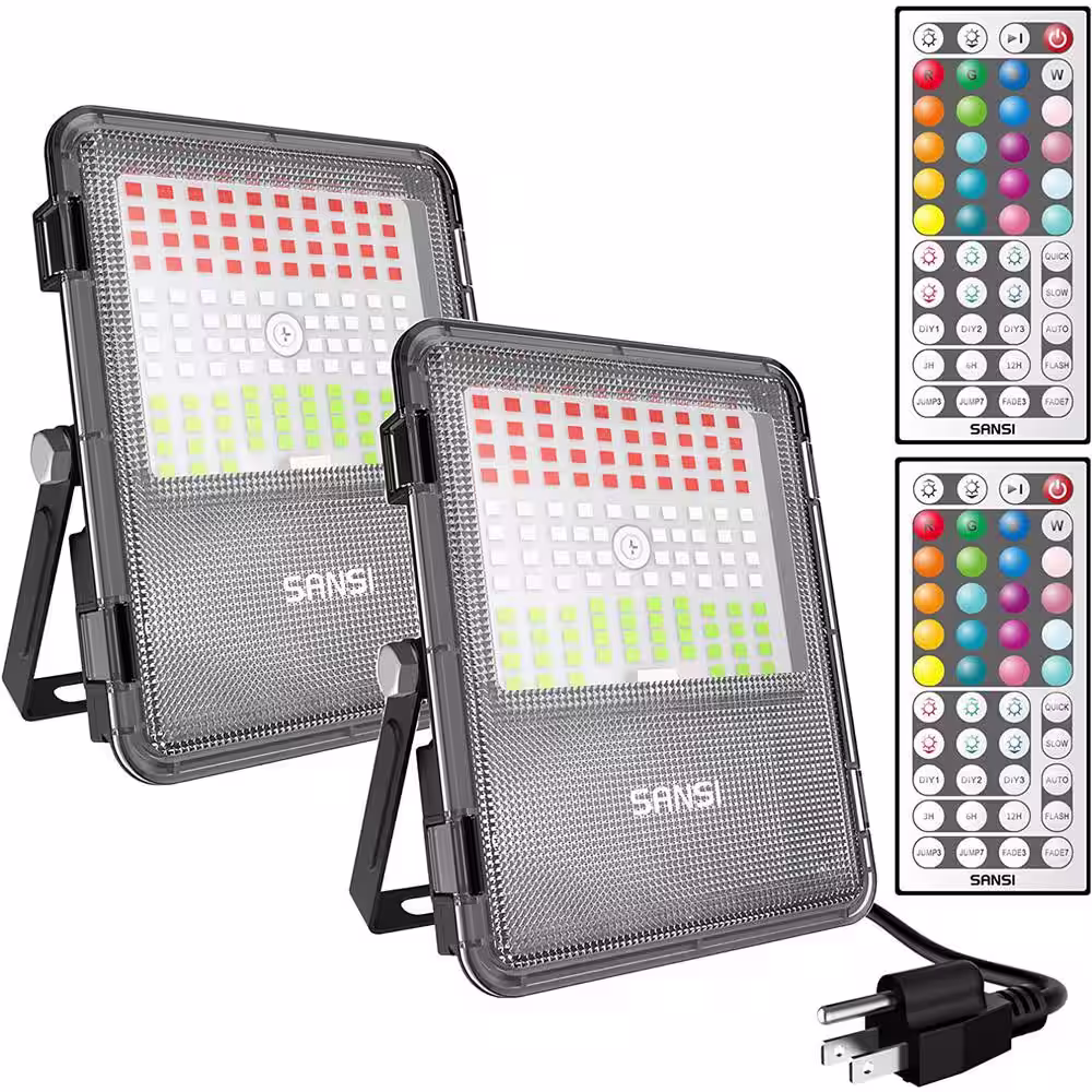 SANSI 120-Watt Equivalent 13200 Lumen RGBW 120 Degree Black Integrated LED Plug In Panel Flood Light (2-Pack)