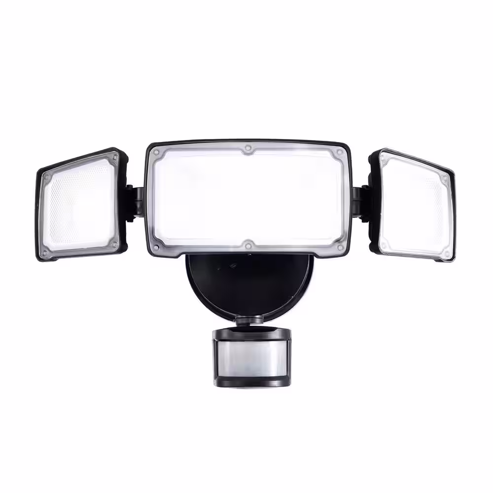 AWSENS 40-Watt 180-Degree Black Motion Activated Outdoor Integrated LED Flood Light with 3 Heads and PIR Dusk to Dawn Sensor