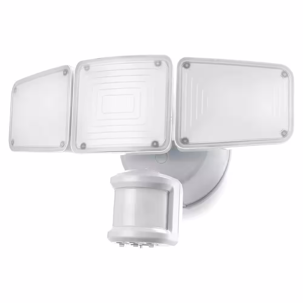Home Zone Security White Motion Activated Outdoor Integrated LED Triple-Head Ultrabright Flood Light