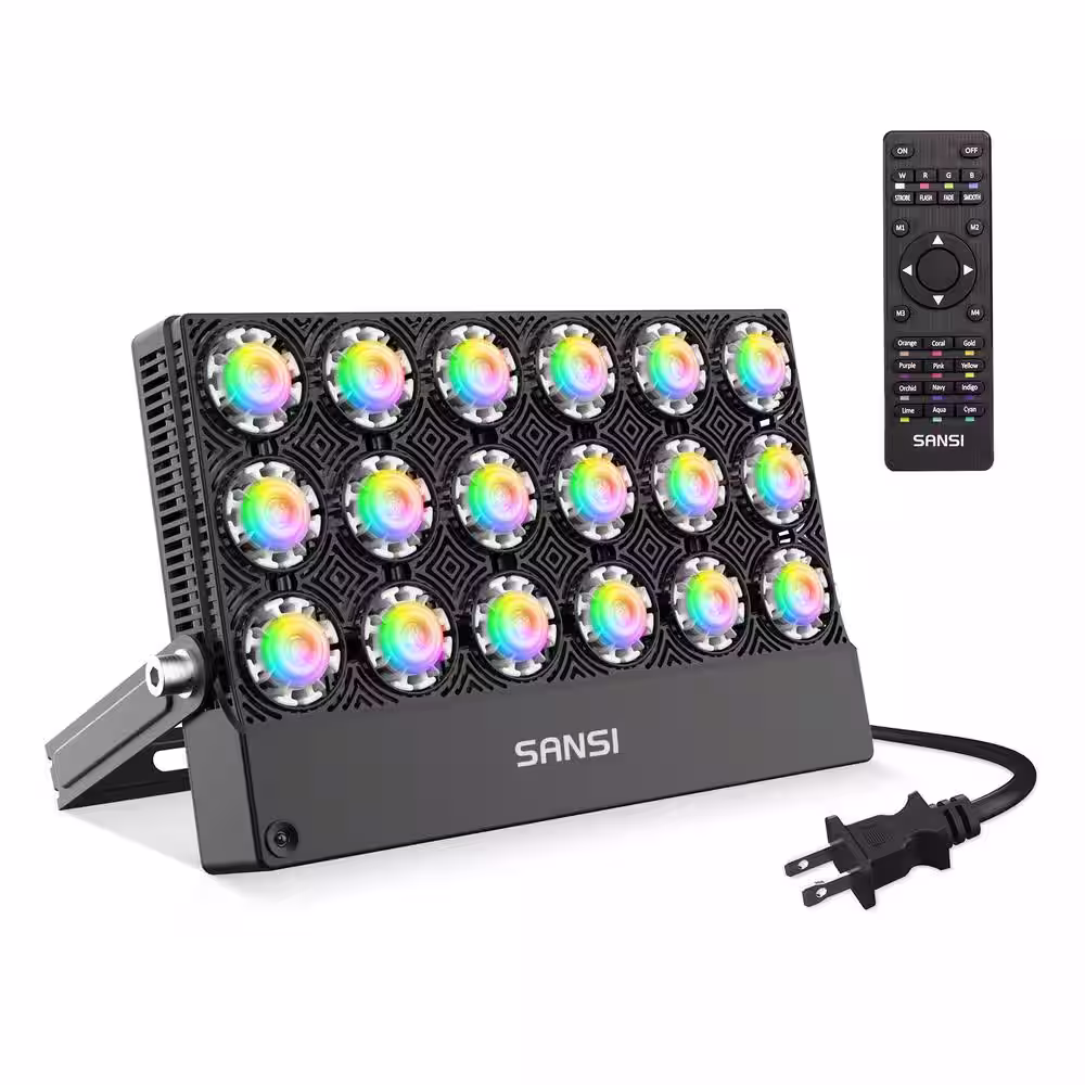 SANSI 100-Watt Black RGB Color Changing Outdoor Integrated LED IP66 Waterproof Panel Flood Light with Remote Control