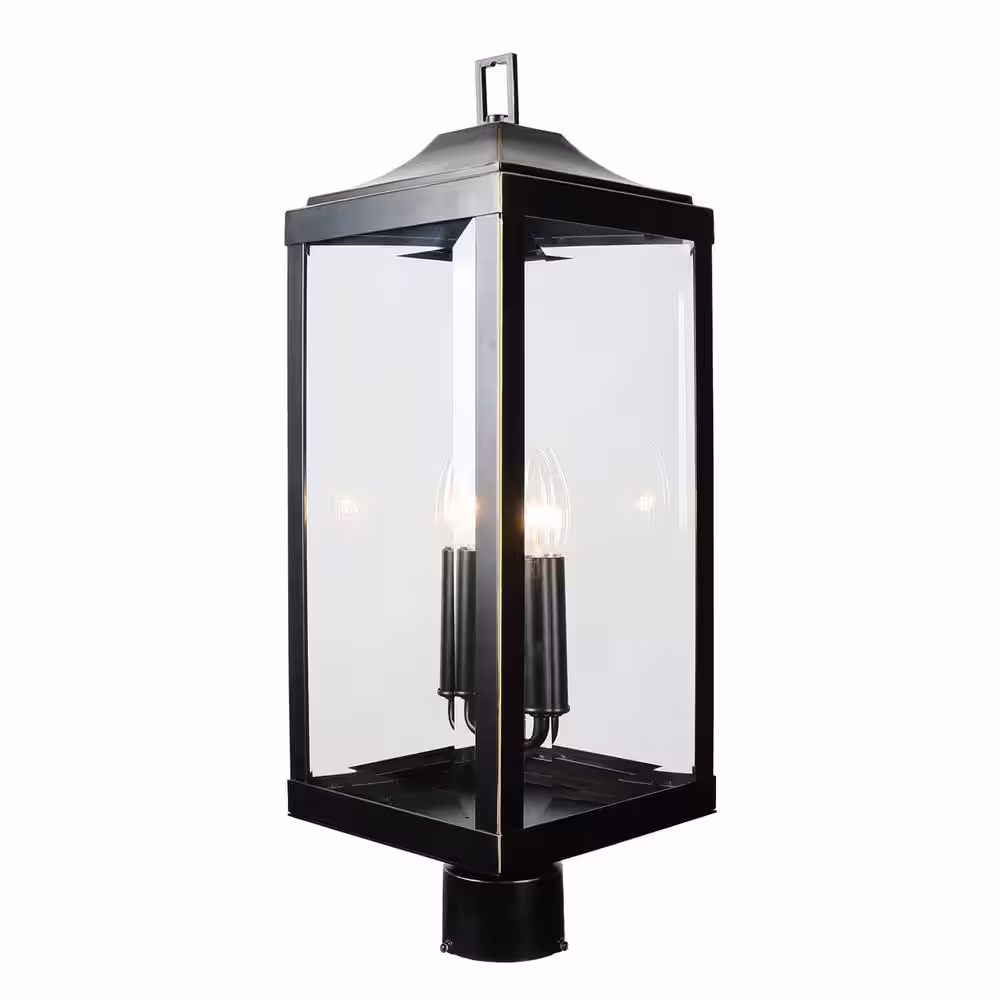 None 23.4 in. 2-Light Imperial Black Outdoor Post Lantern