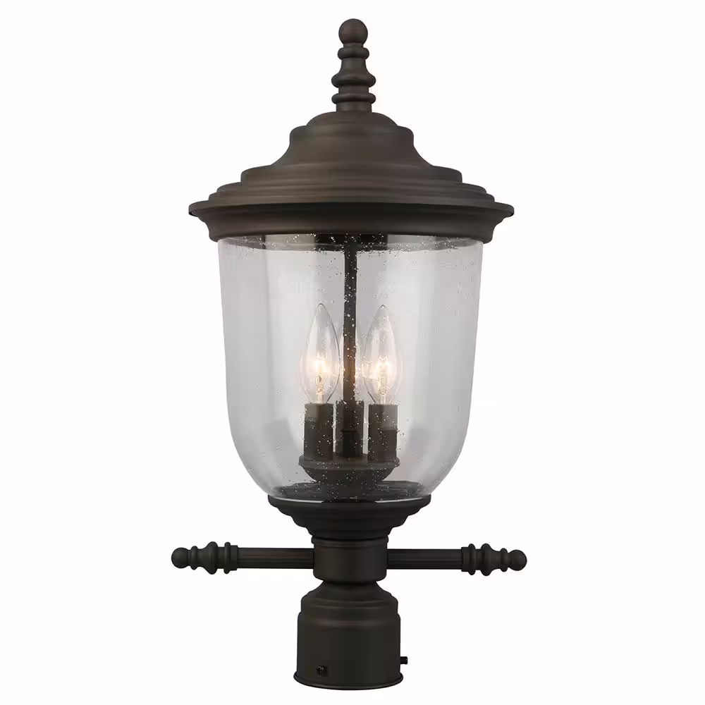 Eglo Pinedale 10.63 in. W x 19.76 in. H 3-Light Matte Bronze Weather Resistant Outdoor Post Light Set with Clear Seeded Glass