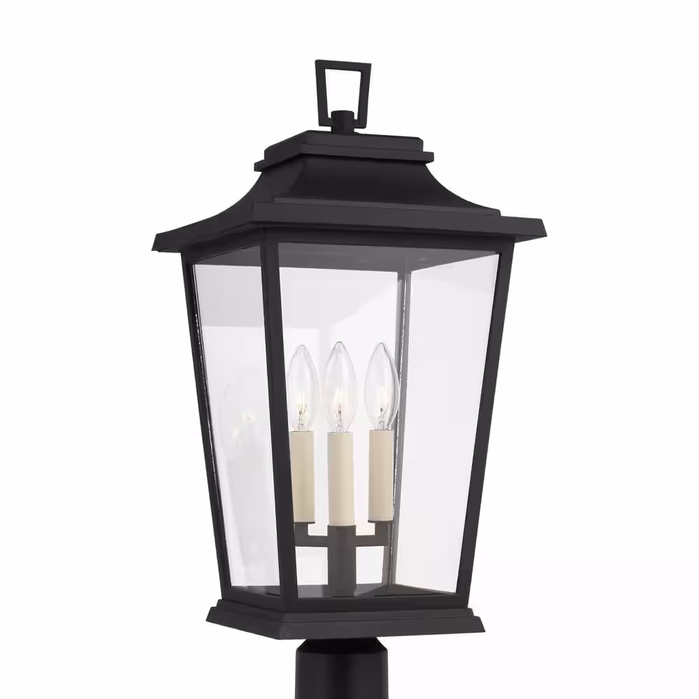 Generation Lighting Warren 10.625 in. W 3-Light Textured Black Outdoor Lamp Post Light with Clear Glass