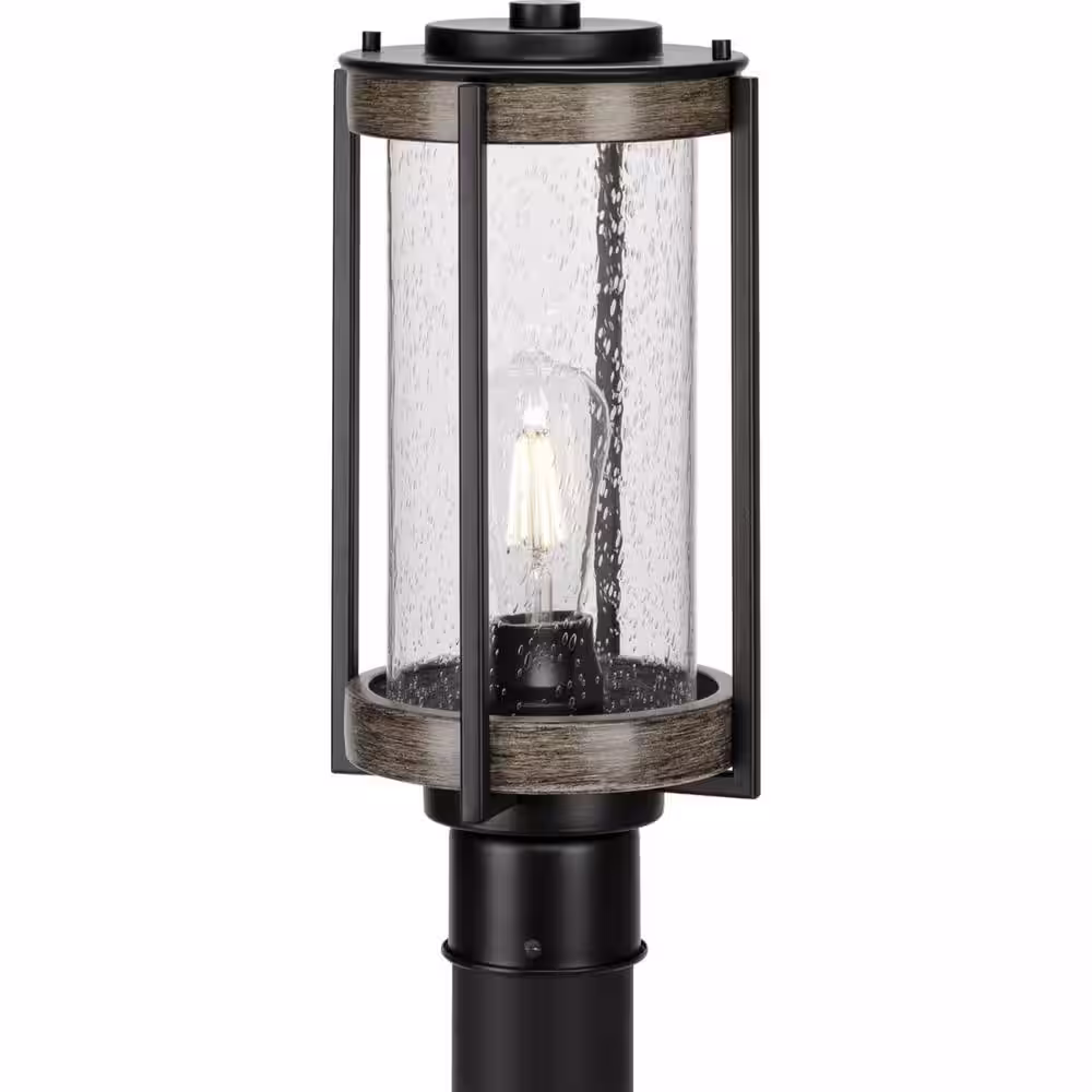 Progress Lighting Whitmire 1-Light Matte Black Outdoor Post Light with Clear Seeded Glass Shade Farmhouse Coastal