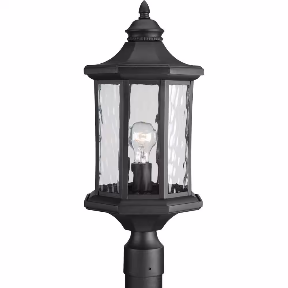 Progress Lighting Edition Collection 1-Light Textured Black Clear Water Glass Traditional Outdoor Post Lantern Light