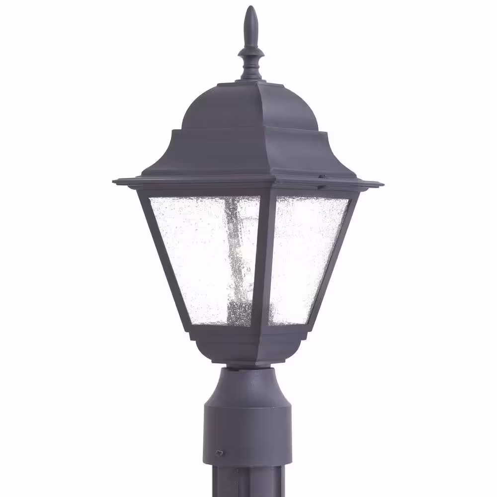 Progress Lighting Endicott Collection 1-Light Textured Black Clear Seeded Glass Craftsman Outdoor Post Lantern Light