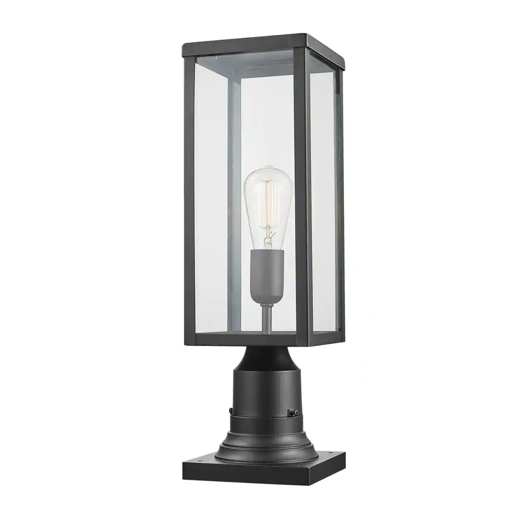 Globe Electric Bowery 1-Light Matte Black Outdoor Lamp Post Light Fixture with Base Adaptor and Clear Glass Inserts