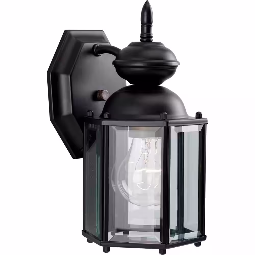 Progress Lighting BrassGUARD Lantern Collection 1-Light Matte Black Clear Beveled Glass Traditional Outdoor Wall Lantern Light