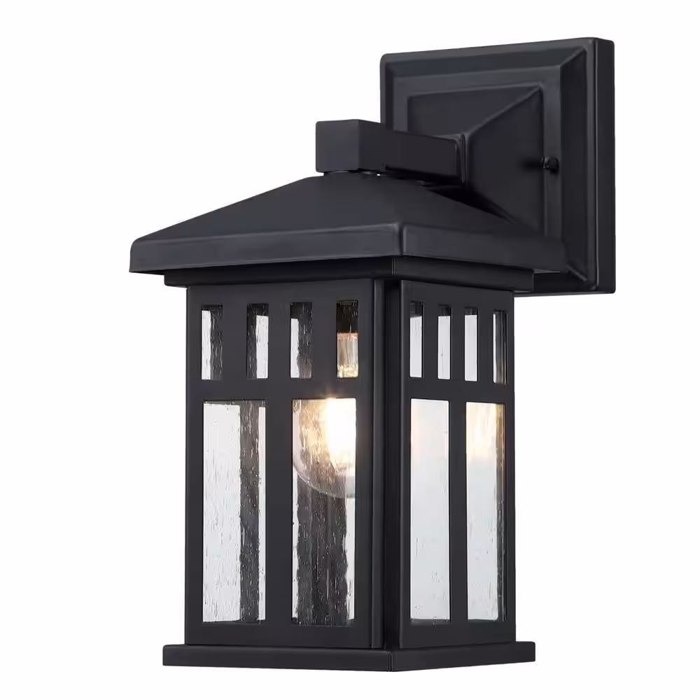 LNC Craftsman 1-Light Matte Black Outdoor Wall Lantern Sconce with Clear Seeded Glass