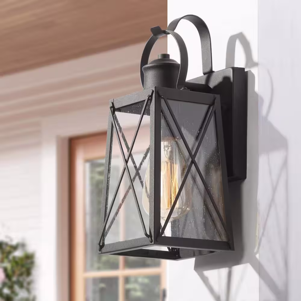 Westinghouse Burnham 1-Light Textured Black Outdoor Wall Mount Lantern with Clear Seeded Glass