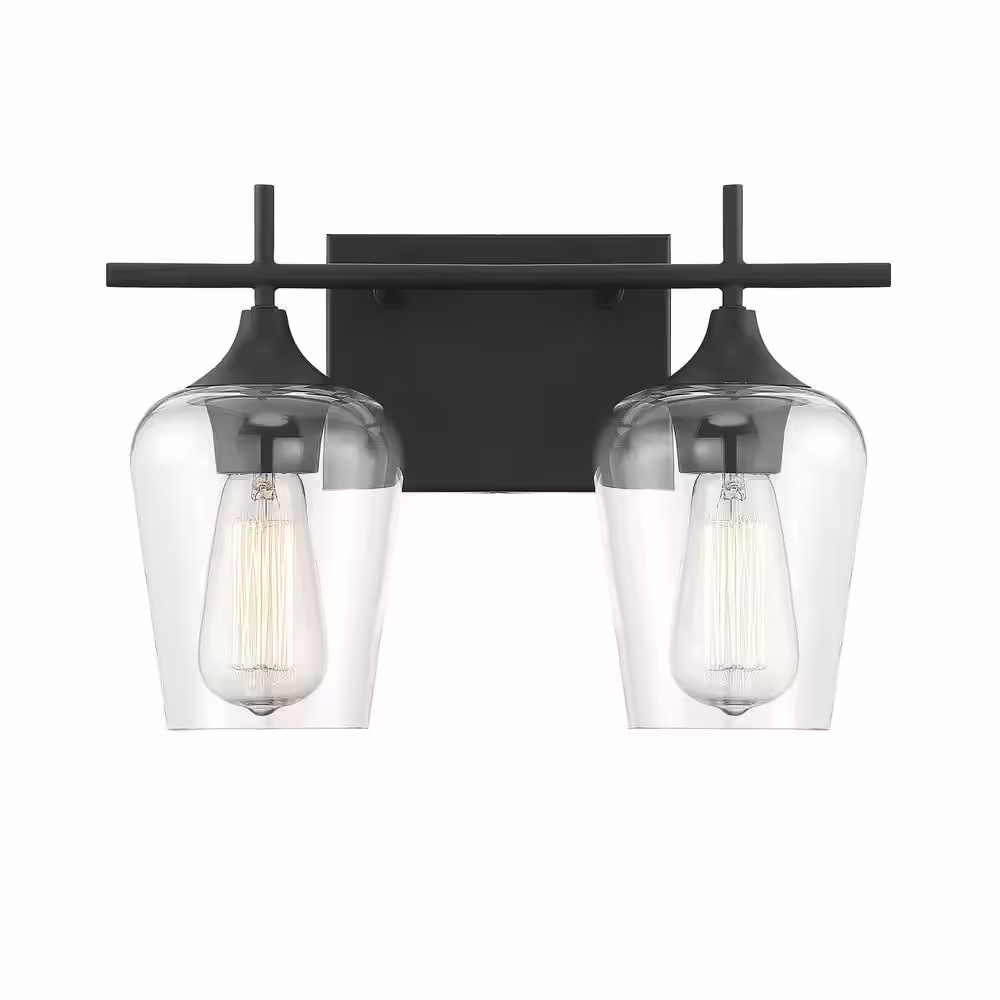 Savoy House Octave 13.75 in. W x 9 in. H 2-Light Black Bathroom Vanity Light with Clear Glass Shades