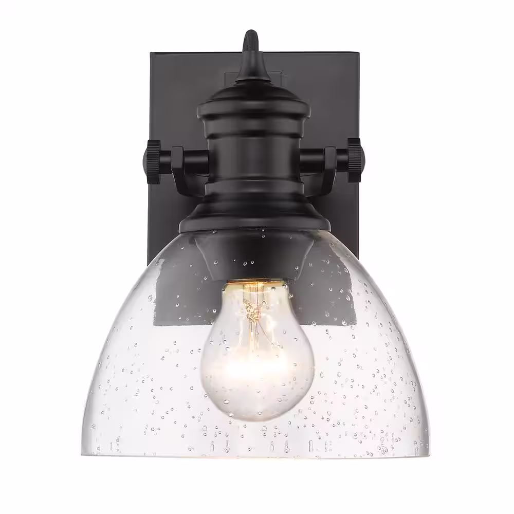 Golden Lighting Hines 1-Light Black and Seeded Glass Bath Light