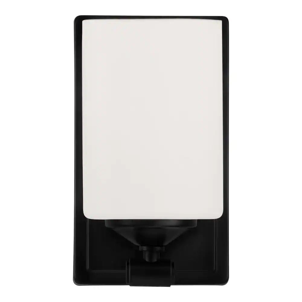 Hampton Bay Darlington 4.5 in. 1-Light Matte Black Indoor Wall Sconce with Frosted Opal Glass Shade